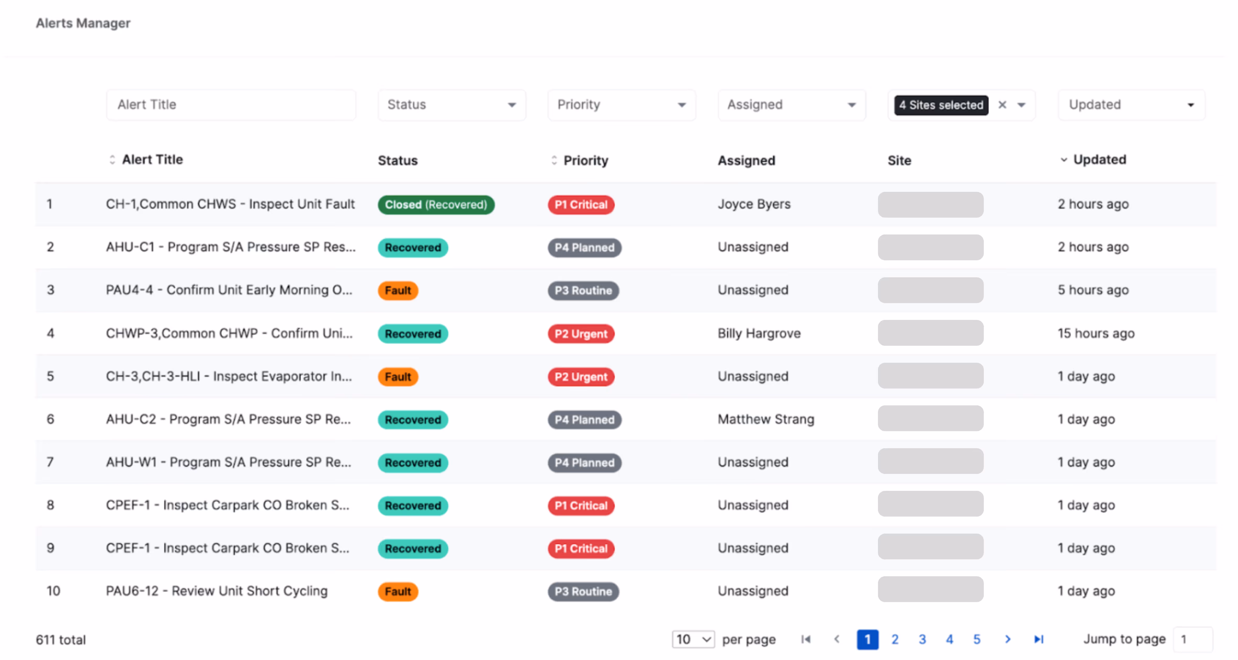 - Unified alert view: See all alerts across every site in one live, searchable feed.